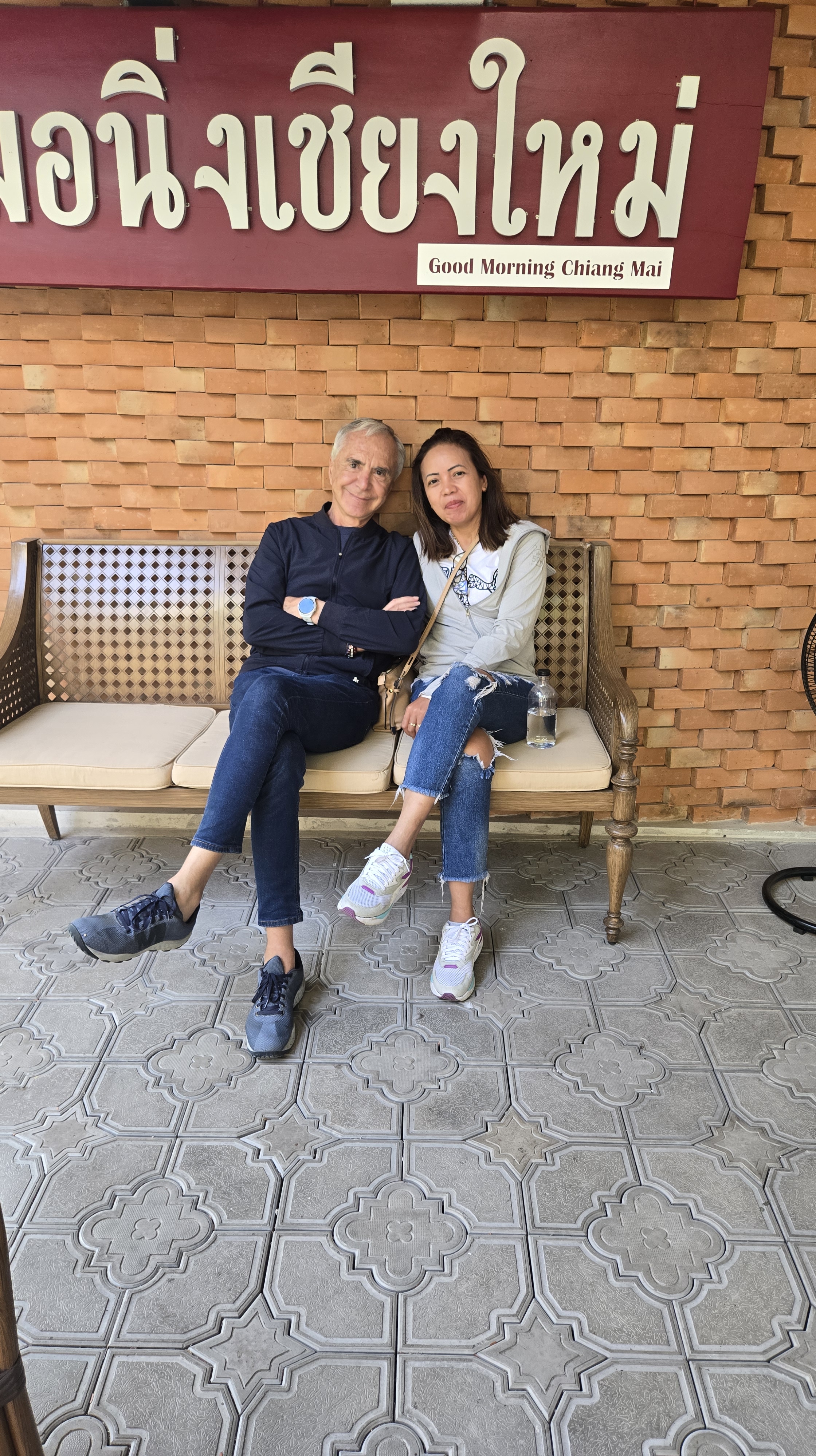 Having eaten all I could, I decided to take some pictures of the premises. I had already taken one of my pancakes. Up to this point, I hadn’t taken much notice of the couple to the left of my table until the man got up to pay their bill while the woman waited for him on the bench by the door. When he reappeared, I asked if I could take a picture of them. I must add that this is not something I usually do but for a reason unknown, it seemed like the right thing to do. They were both happy to oblige. I never asked him if he was once a photographer but he certainly went at it like a professional. After shooting three of me, I called a halt knowing the fun he seemed to be having would end up as more. Furthermore, I sensed his woman friend was getting a bit bored with it all. In the meantime while taking the photos and for a short time after, I found out she was from the Philippines and he was from the northern part of Italy. Somehow, we got onto life in Thailand and how it was a great country for expats. He was especially forceful about how much I stood to gain by selling my house and moving over permanently when he found out I was from cold Canada. He had all the latest news about the changes for getting a six-month or a one-year visa initiated by the present government to encourage and make it easier for those who want to make Thailand their home. I won’t bore you dear reader with any more about our photo shoot and conversation but it has had an impact. Yes, I can honestly say it has inspired me to do this post for my blog. Perhaps it’s a beginning to determining where I go from here? One never knows these days, does one?