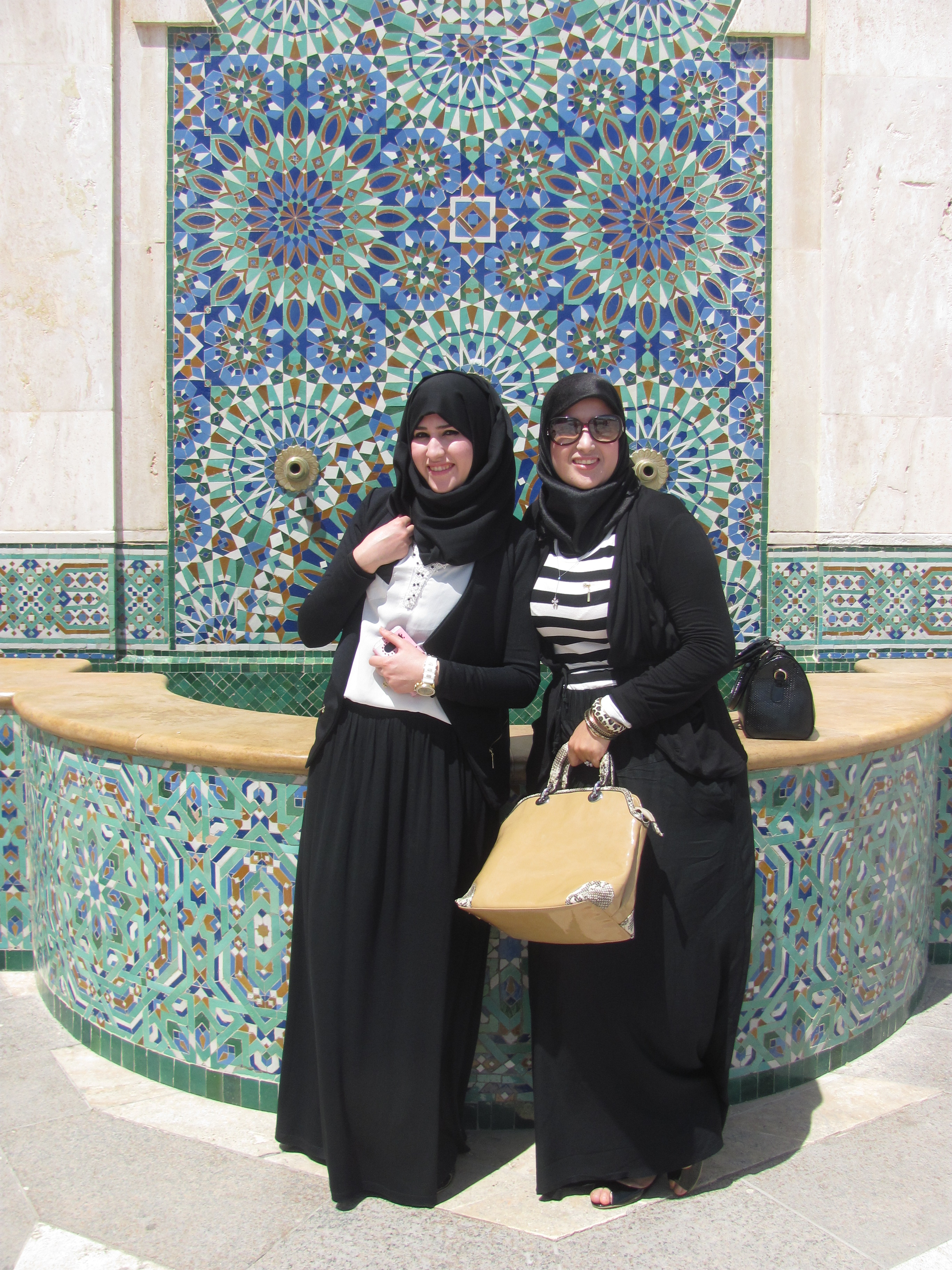 Young women at the Hassan II mosque in Casablanca, who asked me to take this photo, dressed in a fashionable but traditional style.