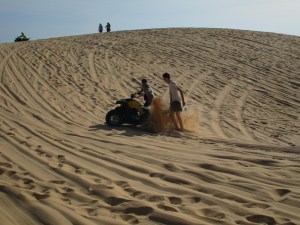 So this is Mui Ne. It’s a one street strip of restaurants, fancy resorts, budget hotels, and restaurants lining both sides of the street and hemmed in by the ocean on one side and sand dunes on the other.