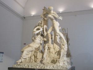 This museum is a must see. It houses one of the world’s most complete collection of sculptures reproduced by the Romans from their older Greek compatriots, as well as mosaics and paintings from the cities of Herculaneum and Pompei which were devastated by the Mt. Vesuvius eruption in 79 A.D. The first floor of this magnificent building is devoted to sculptures depicting Roman heroes both real and mythological. You can’t help but be mesmerized by the beauty of both the male and female anatomy…especially those male bums! Another sculpture which should not be missed is the “The Torture of Dirce” or the Farnese Bull carved from one solid piece of Italian marble. Michelangelo worked on its restoration. The second floor is filled with lovely mosaics and paintings rescued from the ruins of Pompei. Apparently you can see more of how life was lived at that time than if you went to visit Pompei itself. In recent years a little room portraying the sex life of the citizens has been added. Now dubbed the ‘porno room’ it has drawn considerable attention. My thoughts on this display were that it’s not so different from the tantric sex motifs one can view in India. Good for Napoli for daring to portray the reality of their past life.
