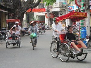 Viet Nam, however, was another story. My first night in Hanoi scared me to death when I was finally faced with the hoards of motorbikes and cars which seemed to be everywhere buzzing around like flies. With few traffic lights and police to direct the chaos, the Vietnamese drivers cope with a seemingly effortless charge ahead into the flow aiming for any spot that looks like a possibility. As a pedestrian, we must wait for a small gap or lull before heading out into the traffic. Then we pray the drivers see you and go around you rather than into you. I will be forever indebted to Mike and his wife, Diane, for helping me master the art of crossing the busy streets of Hanoi. Their presence was a gift because having been there many times, they were happy to not only be a guide for me, but to be my dinner companions. Aware that this was my first venture to a new place on my own, they kindly took me under their wing… or tried to. I can be awfully independent at times.