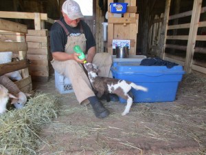 This spring Julia Springob and Lou Barta of Port Royal were faced with this surprise when their ewes presented them with this number of very hungry baby lambs, far more than they ever anticipated. The norm for a ewe is to birth one or maybe two lambs so imagine their surprise when many of them birthed three and even four babies. Since motherhood was new to many of their mothers, they simply couldn’t cope with so many offspring at one time. This is where Julia and Lou had to step in, resulting in bottle feedings every two hours. They were literally on call both night and day for those first weeks. Thankfully they were down to three feedings a day when I visited their farm.