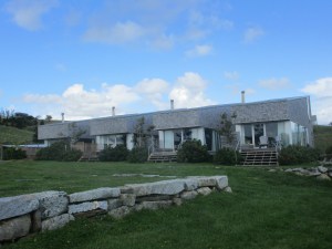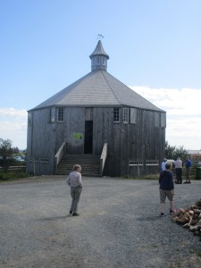 Commonly called a compound, the land has a fabulous north view with Hirtle’s Beach in the distance. The land is dotted with undulating hills called drumlins which are glacial deposits left by the ice age some 15,000 years ago. Waves beating against the cliffs have created lovely sandy beaches below as a result of erosion. Sheep and horses can be found grazing on the grassy hillsides. What makes the scene even more outstanding are the box like cottages and larger buildings all available for rent on a daily, weekly or monthly basis. MacKay-Lyons’ latest acquisition is an old schoolhouse dating back to 1830 which has been restored to incorporate both the old and the new as many of his buildings do. The Troop Barn where we found the art exhibit was found and rescued by him in 2009 near Bridgetown in the Annapolis Valley This was the last of Nova Scotia’s octagonal barns and was slated for demolition because no one had stepped forth to buy it. Thanks to this man’s money and foresight, it’s been beautifully restored and is now used extensively by the community for all kinds of exhibitions and other community gatherings. Not surprisingly MacKay-Lyons has garnered many awards and much recognition for this architectural wonder so it’s worth a visit and definitely a great place to stay for a vacation.