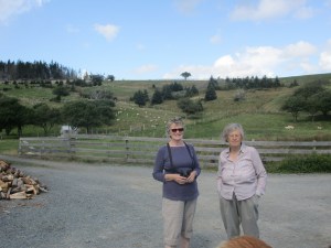 Some drumlins and sheep in the background.