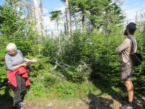 Our guide showing us old and new tree growth.