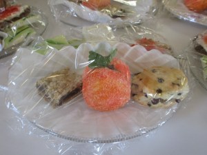 The beautiful table settings, the tea served in silver pots, and the dainty sandwiches and sweets were the main attraction. However, the star of the show had to be the peaches! Why peaches? Well apparently Victoria, when introduced to them on a visit to Italy, fell madly in love with them and every year after that insisted that some be shipped to her in England. Unfortunately, peaches aren’t in season on Victoria Day in Nova Scotia. Instead of serving imports the gals made their own life-like peaches from a secret recipe using ordinary cookie dough.