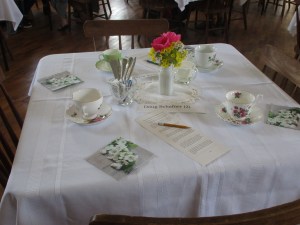 Every effort was made to treat all those who attended this fundraiser an authentic Victorian Tea. Not only did the servers don Victorian dresses, headgear, and gloves, but had to walk carefully to avoid tripping on their long skirts. These little touches along with soft parlour music lent an atmosphere of calm and gentility much appreciated by the guests causing some to linger longer than planned.