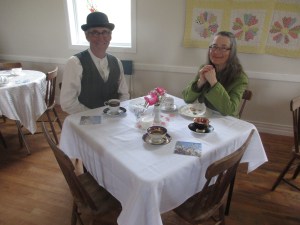 For my Victoria Day Weekend this year, I had the opportunity to do something different: I was asked to be a greeter for the guests who attended a Victorian Tea and Talk at the Lower Granville Hall. Under the capable leadership of Medea and Alan Holtz, new comers to the community of Port Royal, and some hard-working ladies with much experience in holding dinners and teas to raise funds for their hall, this successful tea did a great job of commemorating the Queen’s birthday. What better way to raise some much-needed money for our hall and the Annapolis Heritage Society who will be using our donation to help fix and paint the exteriors of two light houses: the one in Port Royal and the other in Victoria Beach.