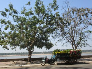 Kratie is a small town of about 7,000 people in northeastern Cambodia situated on the mighty Mekong River. It’s a sleepy little place sporting a green, tree-lined boulevard which stretches almost the entire length of the town from north to south. It’s main claim to fame is its proximity to the dolphins which inhabit the Mekong’s waters just a little north of the town.