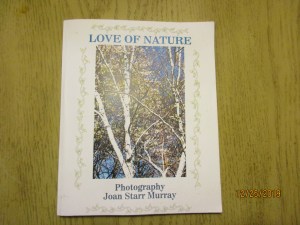 This new found concern was temporarily relieved while packing up my books for a recent move.  My eye was drawn to a small, soft covered book simply entitled ” Love of Nature”…. a book given to me by my cousin, Joan Starr Murray, now deceased.