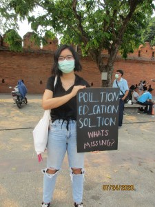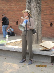 As I was preparing to leave, I suddenly remembered what I thought I had heard when we first gathered at Tha Pai Gate. If I heard correctly, our female leader announced that they were planning to have a demonstration with a walk every week at the same time and place. I hope I heard this correctly because all will be for naught if they don’t keep reminding the general populace to start taking their smog problem seriously. Although we attracted some attention with clapping and smiles as we marched to our destination point, we could have made a much greater impact with more bodies. My hope is that this passionate group will keep up the momentum and have more joining them in the future.  Unfortunately, under a military government based in Bangkok with little understanding of the problems of the Hill Tribes in the north, these young folk have a daunting task ahead of them.