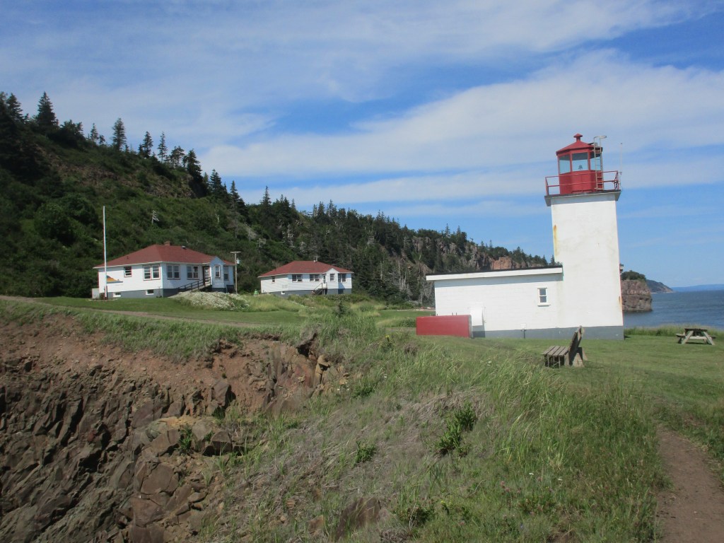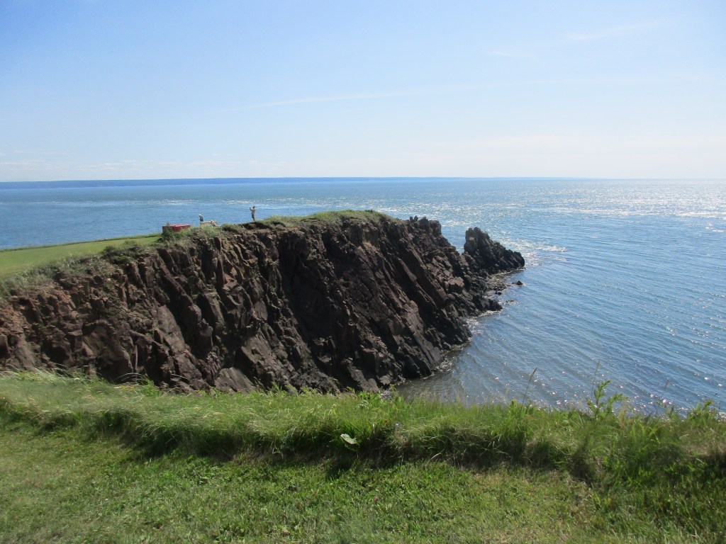 After descending a steep hill, I am greeted by another of the Bay of Fundy’s fantastic views. Here your breath might be taken away by the rugged cliffs on both sides and down below a narrow spit of land projecting out into the Bay giving you an idea of the force of the high tides that the Bay is famous for.